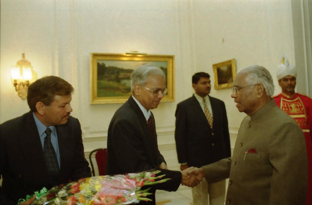 The President of India, Shri K R Narayanan meeting with Mr and Mrs Lyndon H LaRouche and Mr Ramtanu Maitra at the Rashtrapati Bhavan in New Delhi on Dec 05, 2001