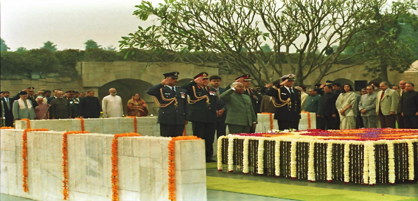The President of India, Shri K R Narayanan paying homage to the Father of the Nation, Mahatma Gandhi at Rajghat in New Delhi on Jan 30, 1998
