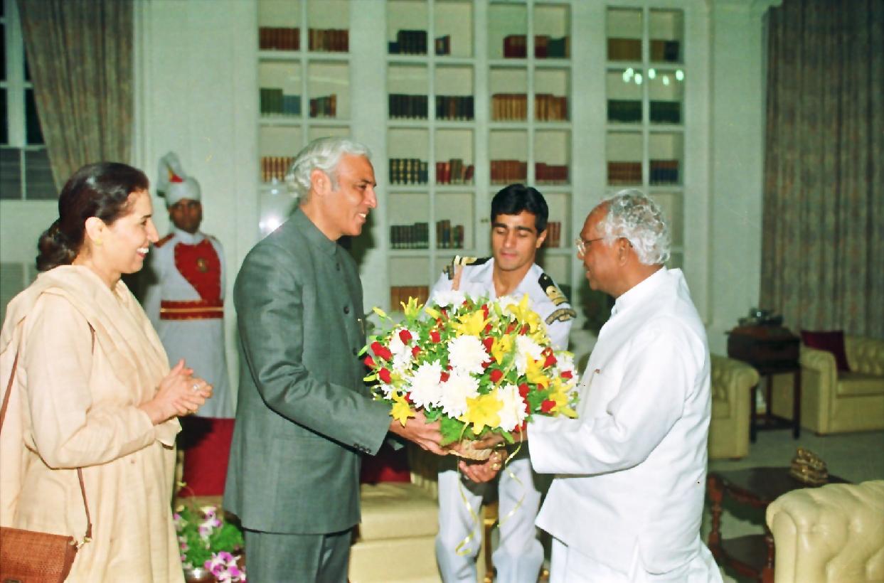 The President of India, Shri K R Narayanan receiving Greeting from the Council of Minister MP's Dignitaries and others at the Morning Room of Rashtrapati Bhavan in New Delhi on Oct 27, 1997