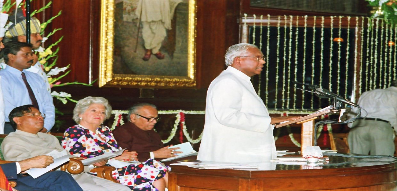The President of India, Shri K R Narayanan at a Commemorative Function on the occasion of the Golden Jubilee of India's Independence in the Central Hall of the Parliament House in New Delhi on Aug 14, 1997