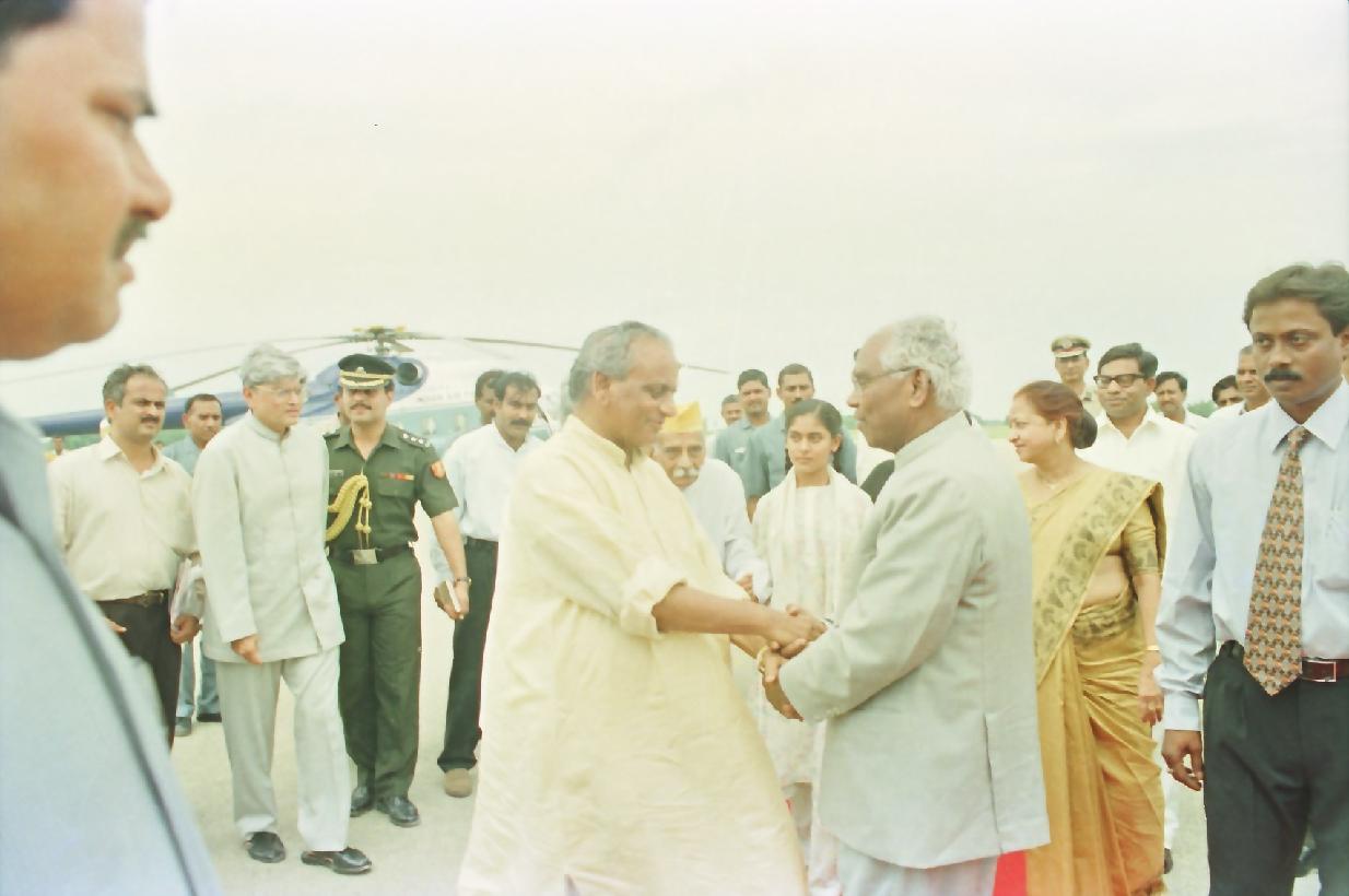 The President of India, Shri K R Narayanan being seen off by the Chief Minister Uttar Pradesh, Shri Kalyan Singh at BHU Helipad at Varanasi in Uttar Pradesh on July 16, 1998