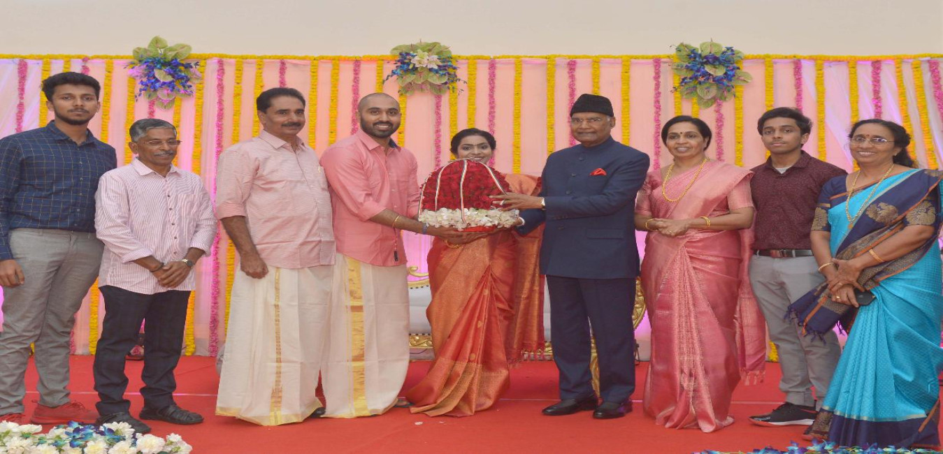 The President of India, Shri Ram Nath Kovind attended wedding reception of Shri Karthik, son of Shri N.K. Premachandran, MP (Lok Sabha), in New Delhi on February 05, 2020.