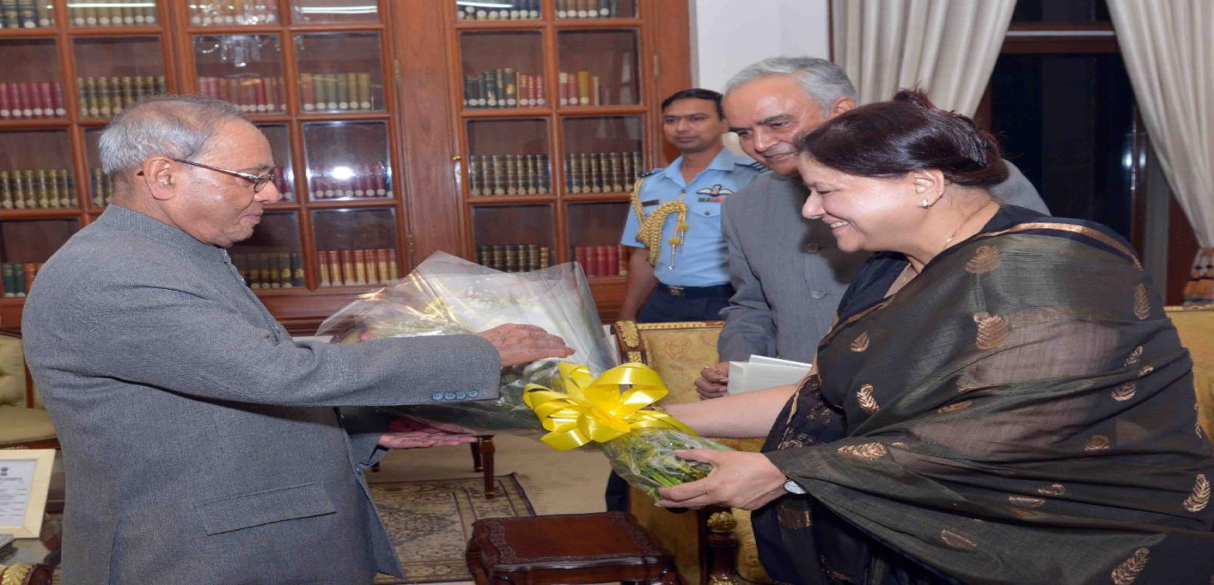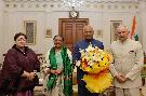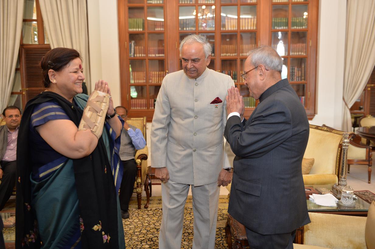 The President of India, Shri Pranab Mukherjee meeting with Lt. Gen. Nirbhay Sharma, Governor of Mizoram alongwith his wife Smt. Jyotsna Sharma, at Rashtrapati Bhavan on March 23, 2016.