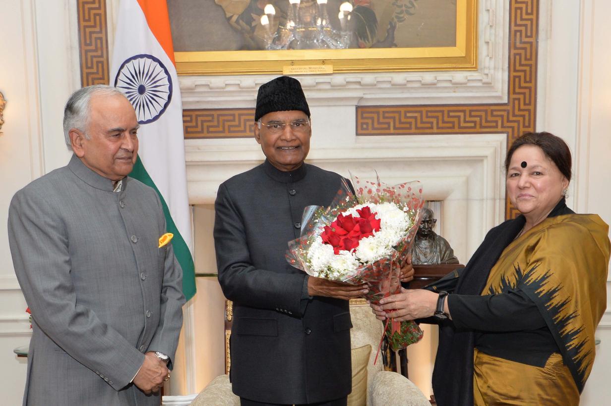 Lt. Gen. (Retd.) Nirbhay Sharma, Governor of Mizoram along with his wife Smt. Jyotsna Sharma meeting with the President of India, Shri Ram Nath Kovind and the First Lady of India, Smt. Savita Kovind, at Rashtrapati Bhavan on January 12, 2018.