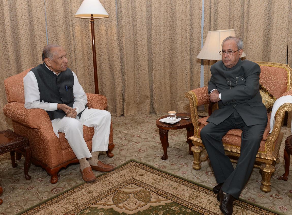 The President of India, Shri Pranab Mukherjee meeting with Dr. A. Chakrapani, Chairman, Andhra Pradesh Legislative Council, Hyderabad, at Rashtrapati Nilayam, Bolarum, in Secunderabad on December 25, 2016.