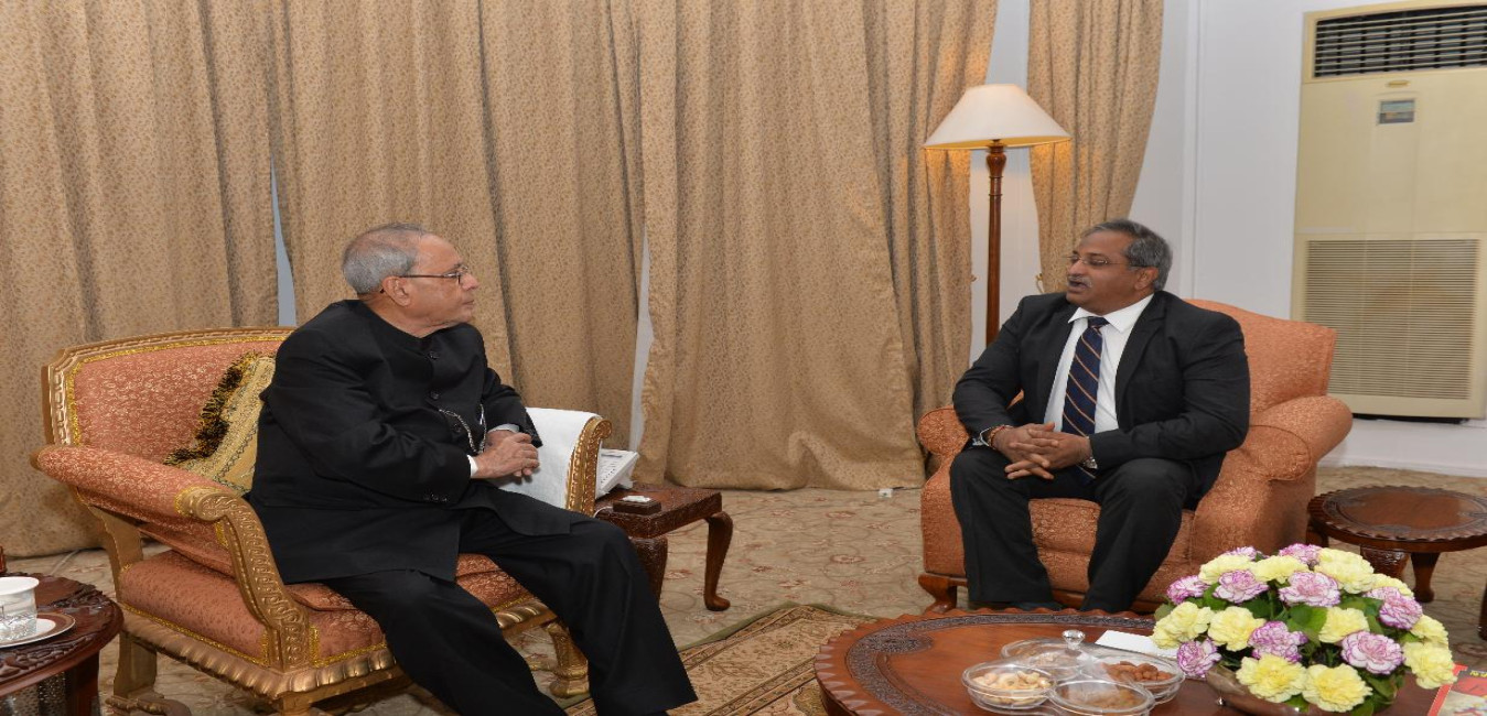 The President of India, Shri Pranab Mukherjee meeting with Shri AB Venkateswara Rao, at Rashtrapati Nilayam, Bolarum, in Secunderabad on December 29, 2015.