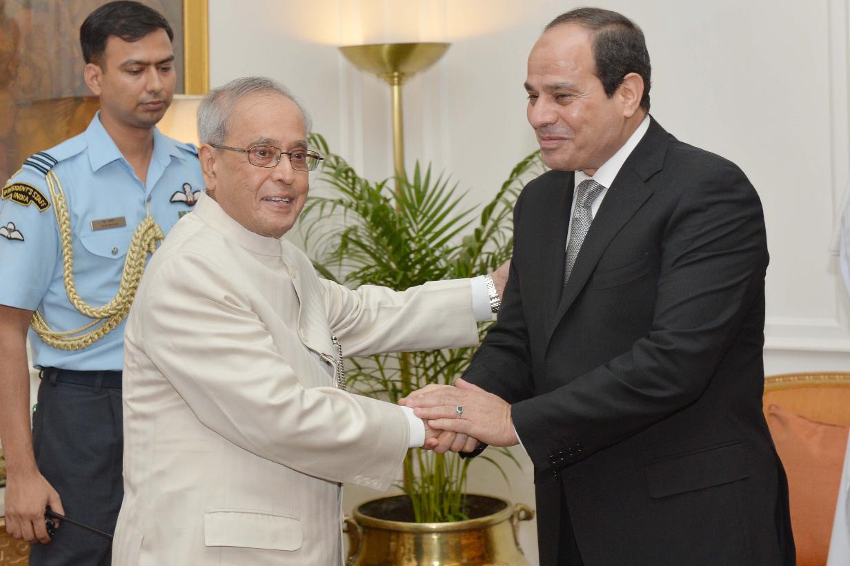 The President of the Arab Republic of Egypt, H.E. Mr. Abdel Fattah Al-Sisi calling on the President of India, Shri Pranab Mukherjee, at Rashtrapati Bhavan on October 28, 2015.