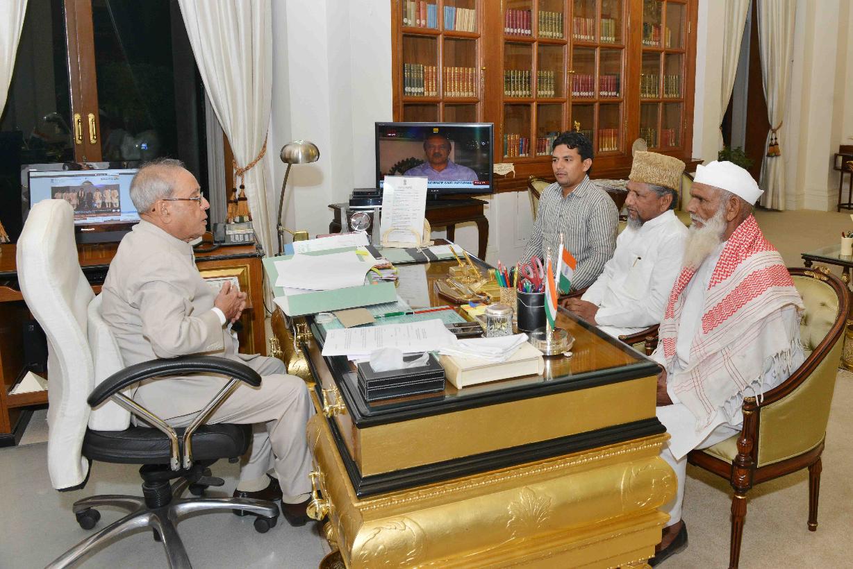 The President of India, Shri Pranab Mukherjee meeting with Shri Abdul Gaffar Qureshi, Chairman Minority Department, Haryana, at Rashtrapati Bhavan, in New Delhi on August 31, 2015.