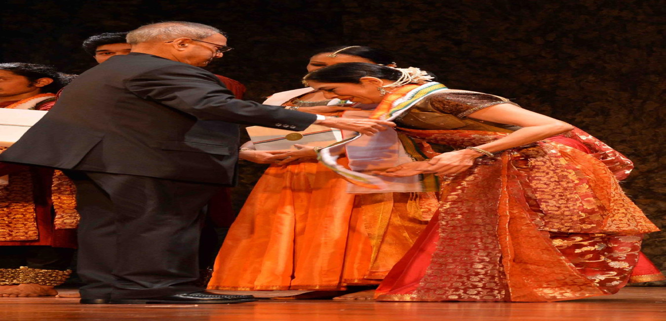 The President of India, Shri Pranab Mukherjee felicitating the artists after witnessing a Kathak performance 'Uncharted Seas' by Ms. Aditi Mangaldas, at Rashtrapati Bhavan Auditorium on March 13, 2016.