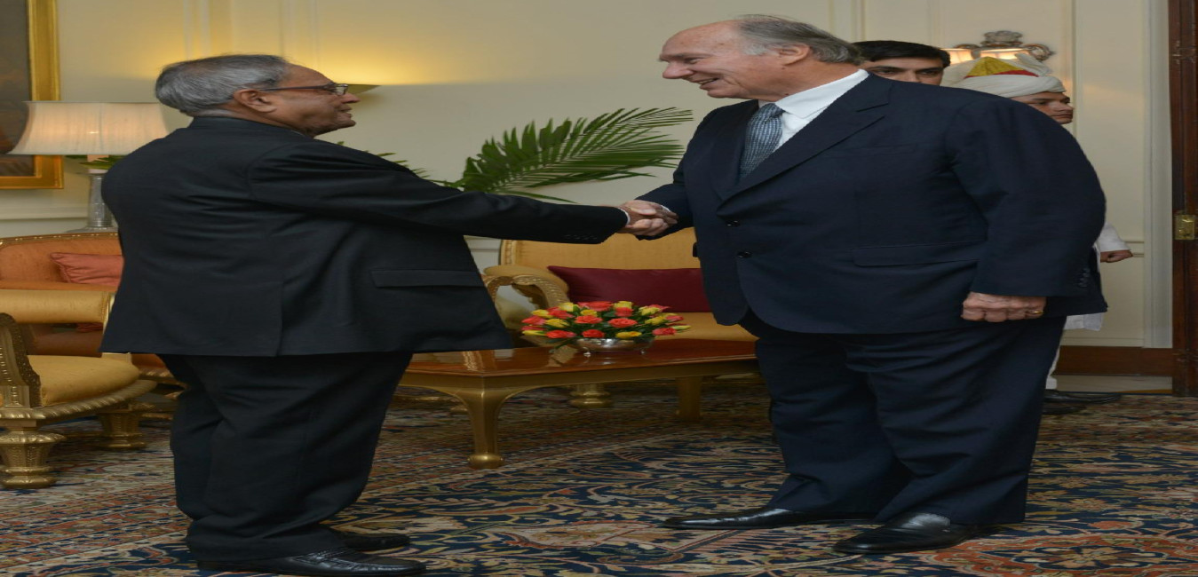 The President of India, Shri Pranab Mukherjee interacting with His Highness the Aga Khan at Rashtrapati Bhavan in New Delhi on Sep 19, 2013