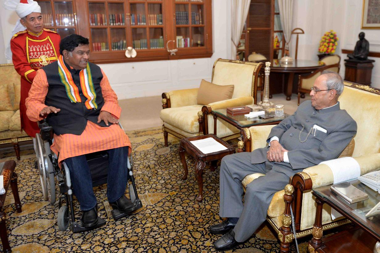 The President of India, Shri Pranab Mukherjee meeting with the former Chief Minister of Chhattisgarh, Shri Ajit Jogi, at Rashtrapati Bhavan, in New Delhi on September 25, 2015.