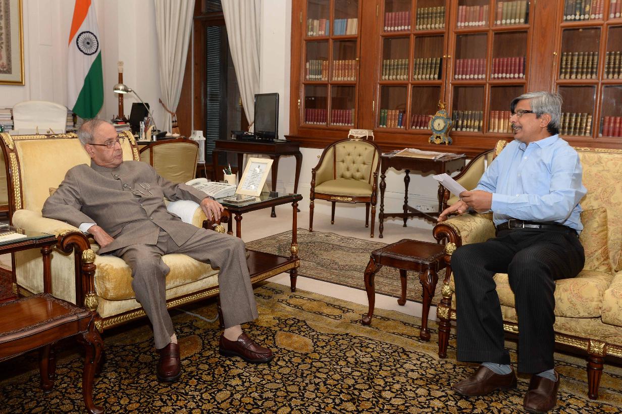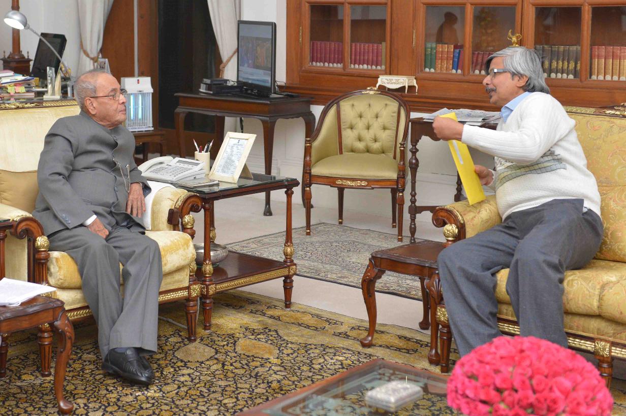 The President of India, Shri Pranab Mukherjee meeting with Prof. Ajoy Kumar Ray, Director, Indian Institute of Engineering Science and Technology, Shibpur, West Bengal, at Rashtrapati Bhavan on January 07, 2016.