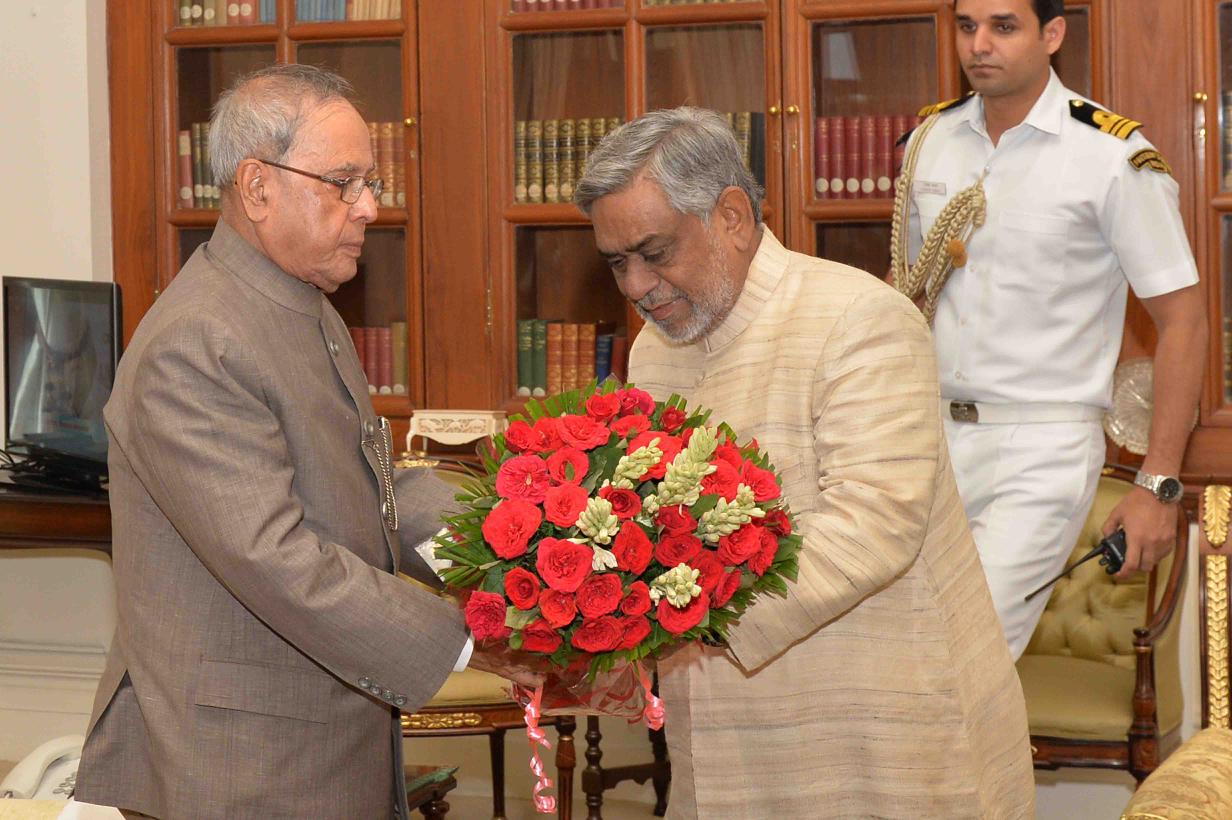 The President of India, Shri Pranab Mukherjee meeting the Commissioner for Linguistic Minorities in India, Ministry of Minority Affairs, Prof. Akhtarul Wasey, at Rashtrapati Bhavan, in New Delhi on July 13, 2015.