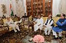 The President of India, Shri Pranab Mukherjee meeting with Shri Amar Singh, Ex-MP (RS), Shri Mulayam Singh Yadav, MP (LS) and Dr. Subhash Chandra, Chairman, Zee and Essel Group, at Rashtrapati Bhavan on March 29, 2016.