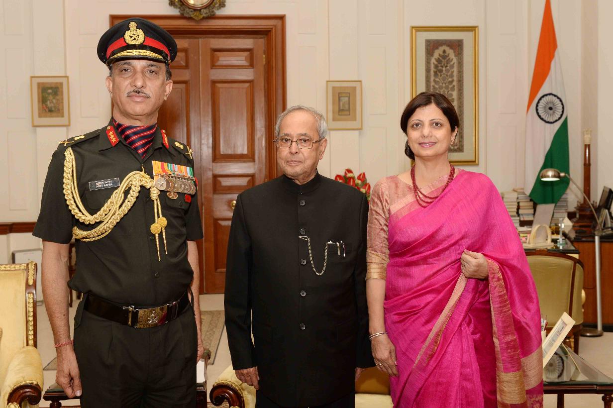 The President of India, Shri Pranab Mukherjee meeting with Lt. Gen. Amit Sarin, Director General, Ordnance Services and Hony ADC to the President alongwith his wife and daughter, at Rashtrapati Bhavanon November 13, 2016.