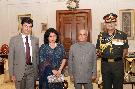 The President of India, Shri Pranab Mukherjee meeting with Lt. Gen. Amit Sharma, Commander-in-Chief HQ Strategic Force Command (SFC) & Hony ADC to the President alongwith his wife Smt. Renuka Sharma and son Shri Aditya Sharma, at Rashtrapati Bhavan on July 22, 2016.