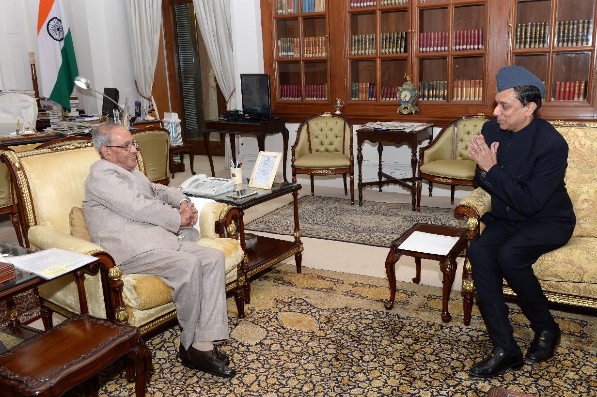 The President of India, Shri Pranab Mukherjee meeting with Dr. Anant Narain Singh from Banaras, at Rashtrapati Bhavan on May 22, 2017.