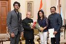 The President of India, Shri Pranab Mukherjee meeting with Shri Anto Antony, MP (LS) alongwith his son Shri Kevin George Antony and daughter Ms. Anna Maria Antony, at Rashtrapati Bhavan on December 17, 2016.