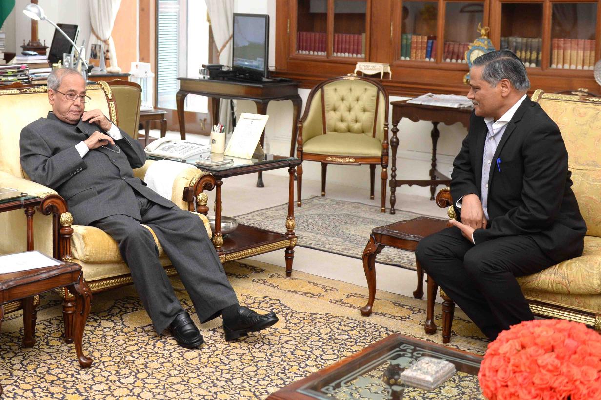 The President of India, Shri Pranab Mukherjee meeting with Shri Anup Pujari, former Secretary to the Government of India, at Rashtrapati Bhavan on February 17, 2017.