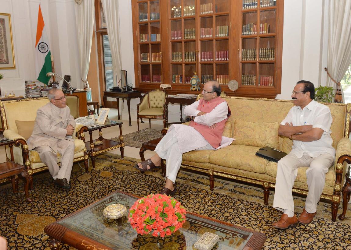 The President of India, Shri Pranab Mukherjee meeting with Shri Arun jaitley, Minister of Finance, at Rashtrapati Bhavan on August 13, 2016.