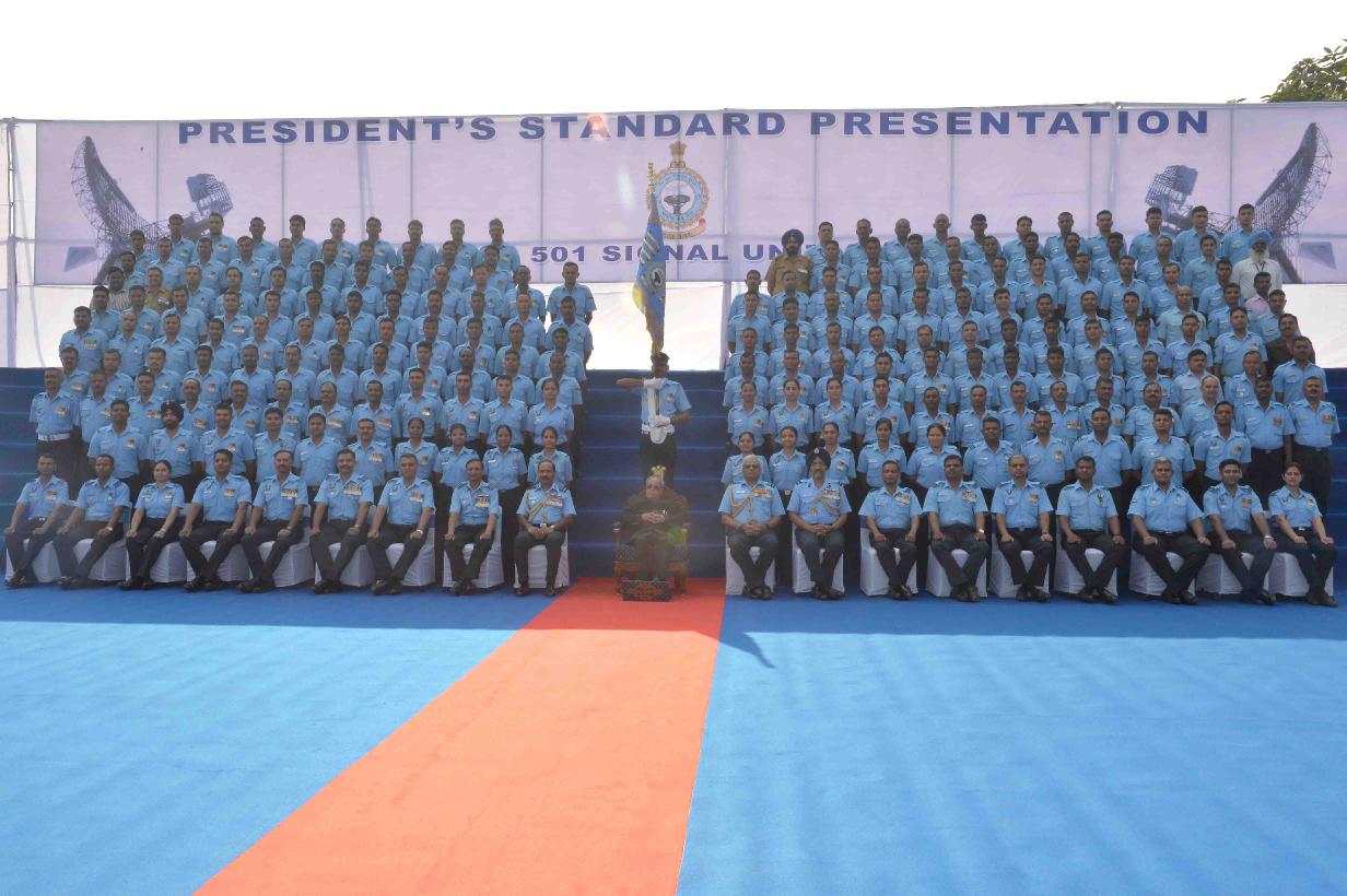 The President of India, Shri Pranab Mukherjee during the presentation of Standard to 501 Signal Unit and 30 Squadron of Indian Air Force, at Air Force Station Ambala, in Haryana on November 10, 2016.