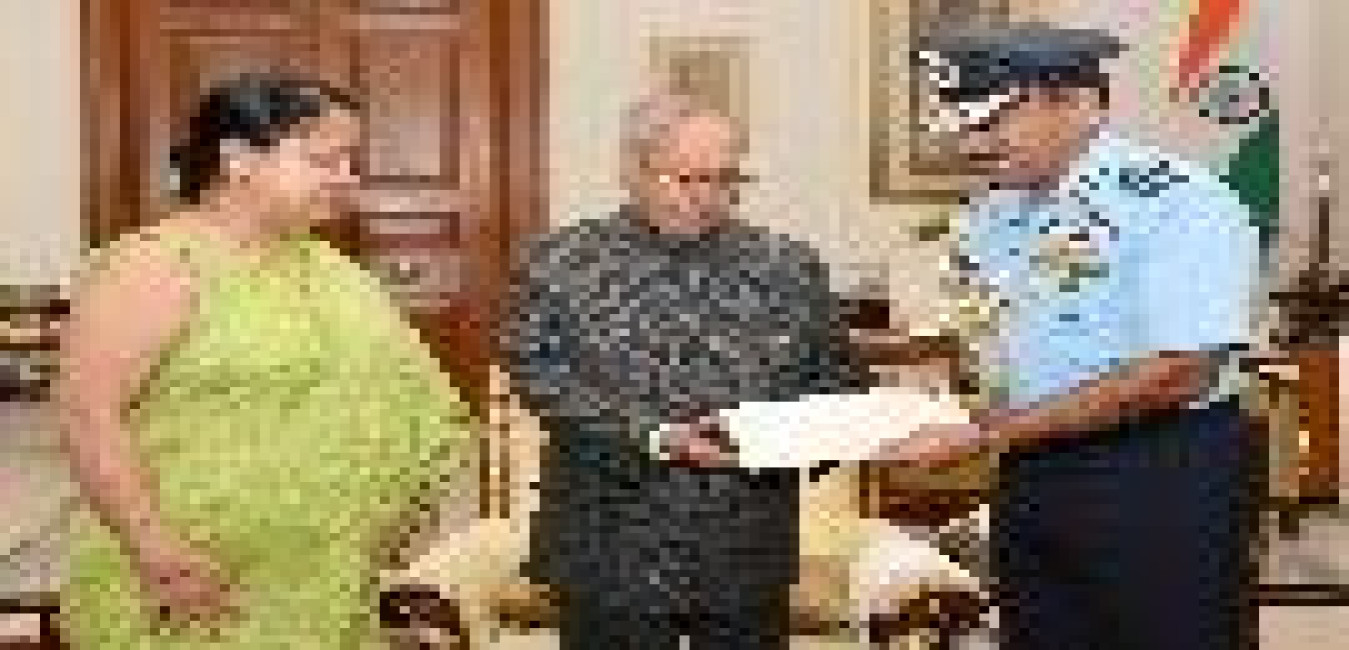 The President of India, Shri Pranab Mukherjee meeting with Air Chief Marshal Arup Raha, Chief of the Air Staff and Mrs. Lily Raha during a farewell call, at Rashtrapati Bhavan on December 21, 2016.