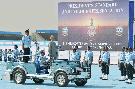 The President of India, Shri Pranab Mukherjee reviewing the Parade and releasing Special Cover at the presentation of Standard to 119 Helicopter Unit and Colours to 28 Equipment Depot of Indian Air Force, at Jamnagar, Gujarat on March 04, 2016.