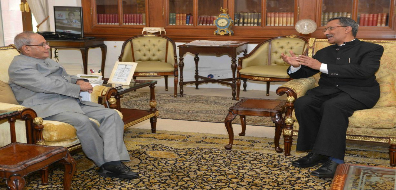 The President of India, Shri Pranab Mukherjee meeting with Shri Ashok Warrier, Ambassador-designate of India to Democratic Republic of Congo, at Rashtrapati Bhavan, in New Delhi on November 10, 2015.