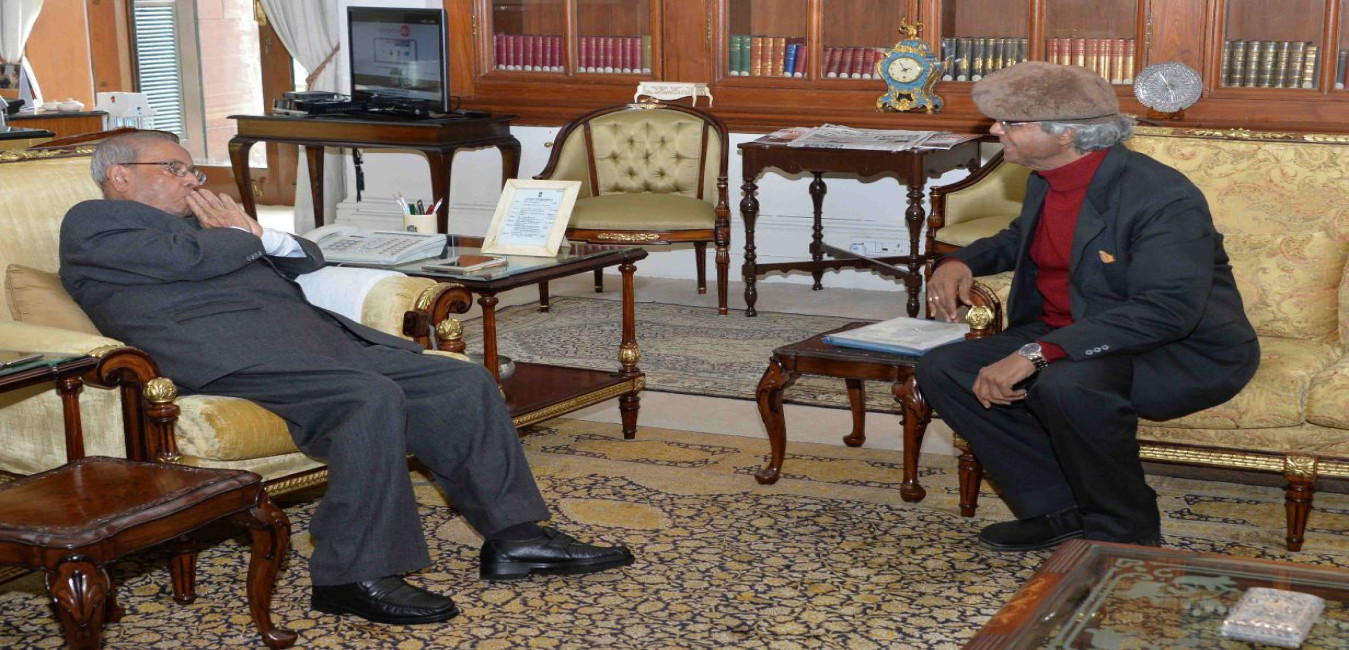 The President of India, Shri Pranab Mukherjee meeting with Shri Ashoke C. Sen, former Secretary to the Government of India, at Rashtrapati Bhavan on February 04, 2017.