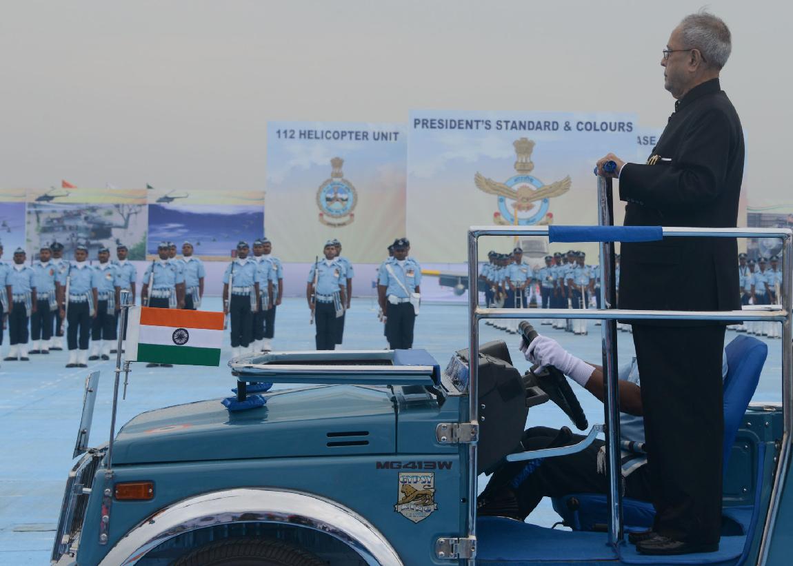 The President of India, Shri Pranab Mukherjee during the Presentation of President s Standard to 112 Helicopter Unit (HU) and Colours to No-4 Base Repair Depot (BRD) of Indian Air Force at Kanpur in Uttar Pradesh on March 11, 2014