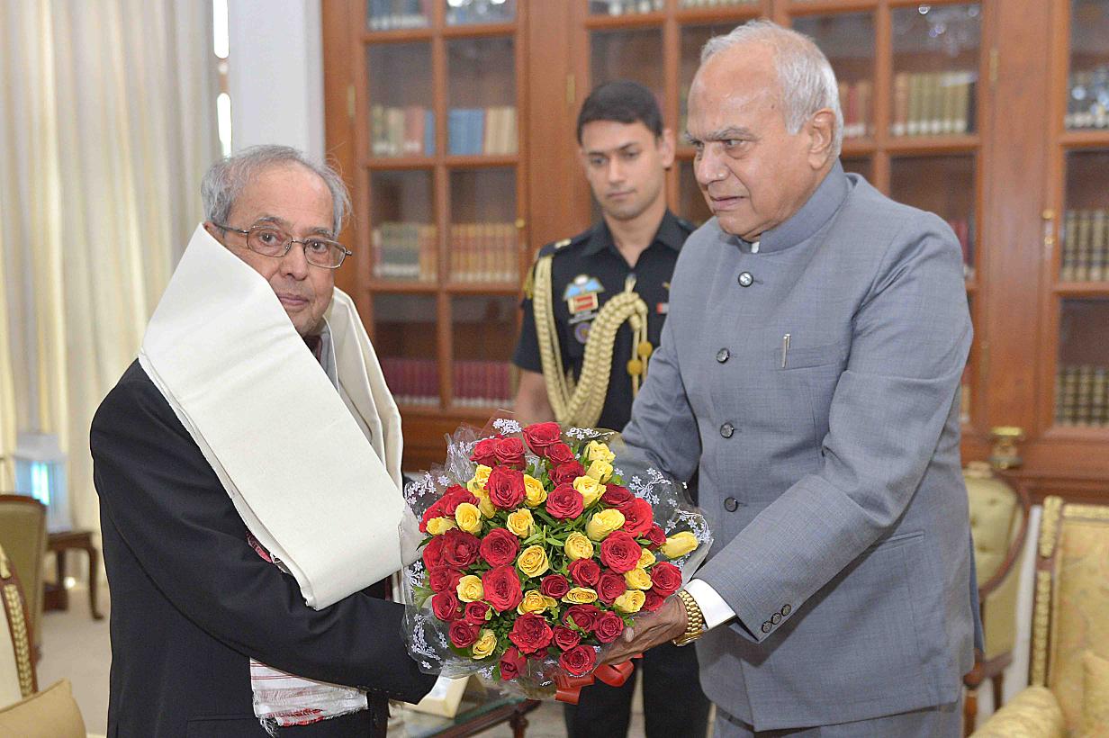 The President of India, Shri Pranab Mukherjee meeting with Shri Banwarilal Purohit, Governor of Assam, at Rashtrapati Bhavan on July 03, 2017.