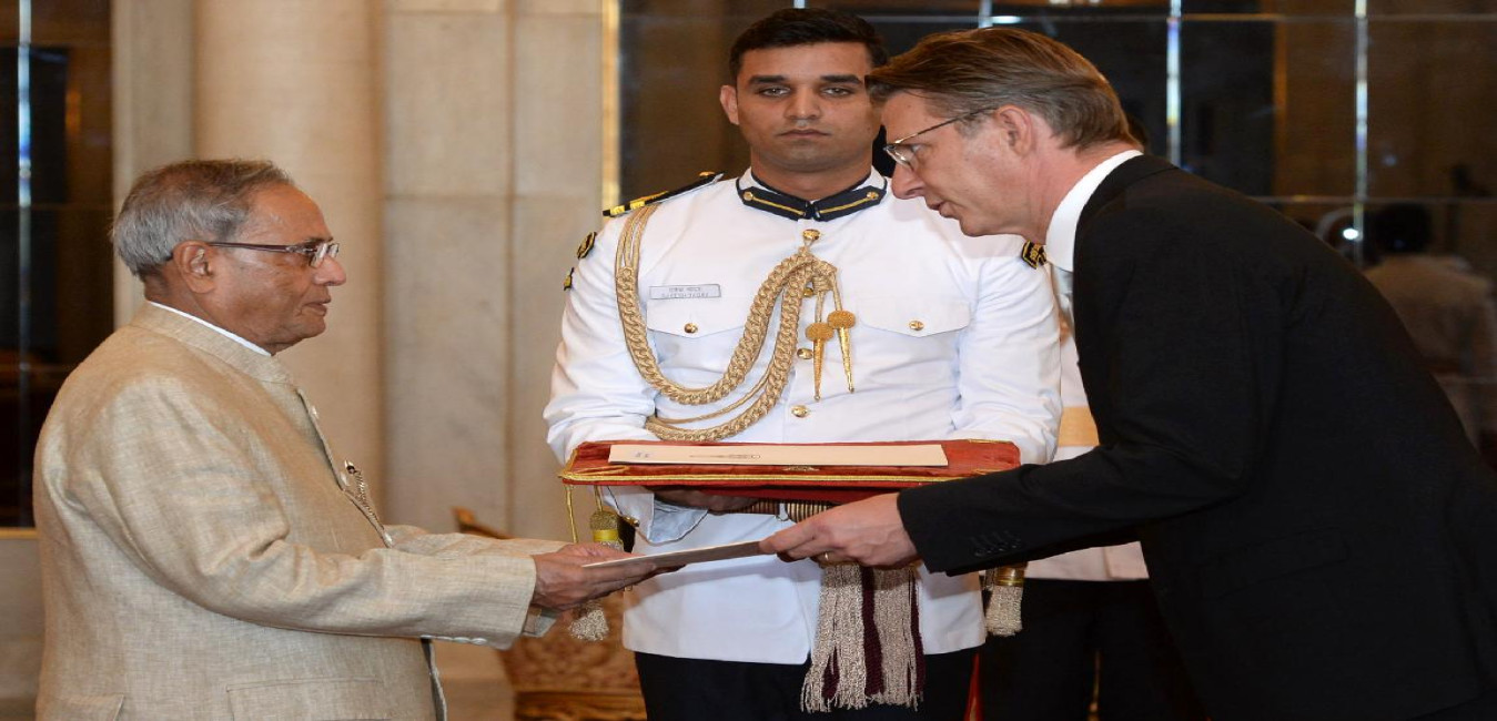HE Mr Bernhard Wrabetz, Ambassador - Designate of the Republic of Austria presenting his credentials to The President of India, Shri Pranab Mukherjee at Rashtrapati Bhavan in New Delhi on Sep 04, 2013