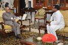 The President of India, Shri Pranab Mukherjee meeting with Dr. Bhakta Charan Das, former Union Minister, at Rashtrapati Bhavan, in New Delhi on August 24, 2015.