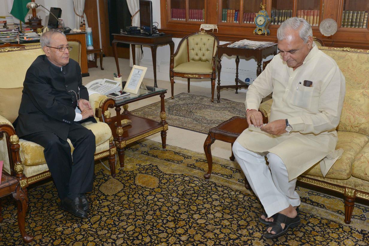 The President of India, Shri Pranab Mukherjee meeting with the former Chief Minister of Haryana, Shri Bhupender Singh Hooda, at Rashtrapati Bhavan, in New Delhi on October 09, 2015.