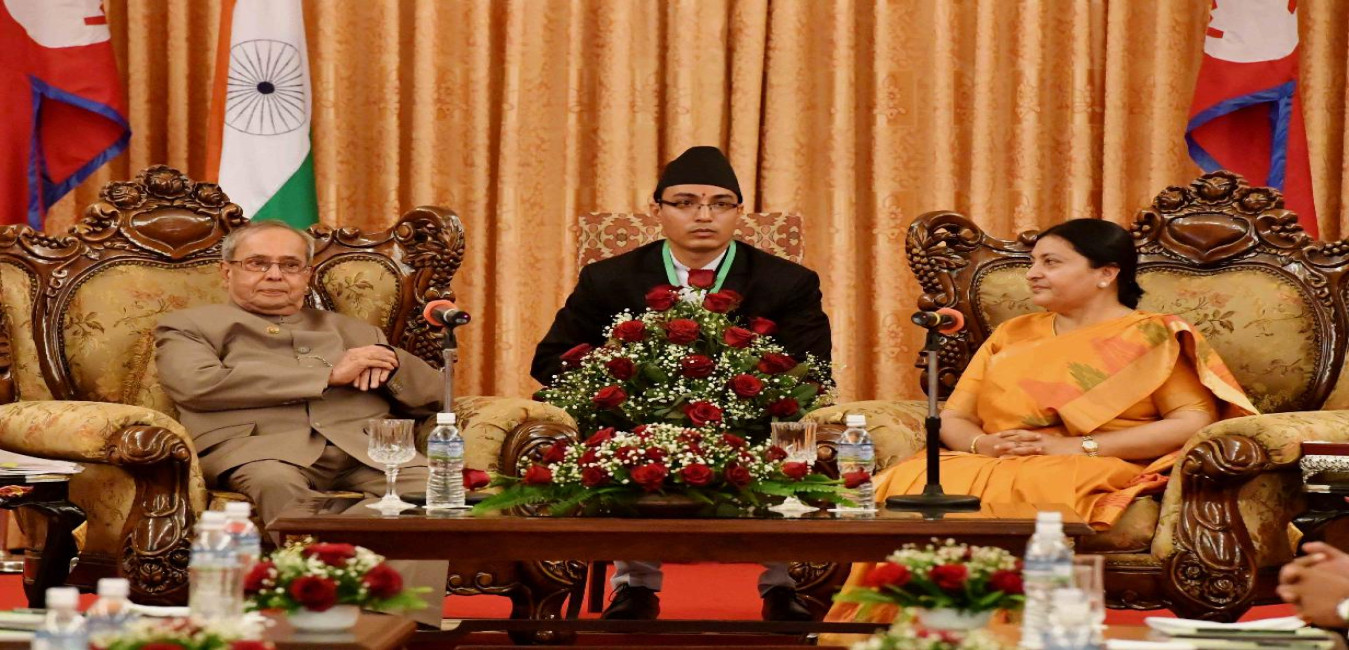 The President of Nepal, H.E. Ms. Bidya Devi Bhandari calling on the President of India, Shri Pranab Mukherjee, at Shital Niwas, in Kathmandu, Nepal on November 02, 2016.
