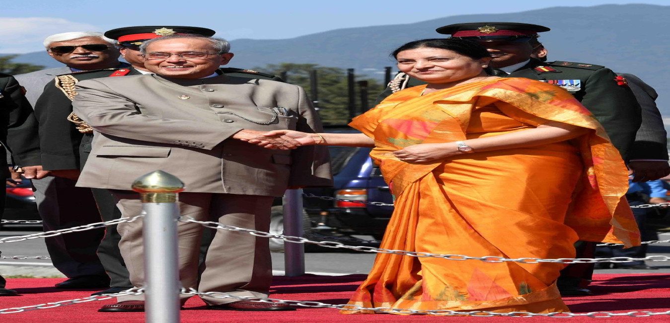 The President of India, Shri Pranab Mukherjee being received by the President of Nepal, H.E. Ms. Bidya Devi Bhandari on his arrival, at Tribhuvan International Airport, in Kathmandu, Nepal on November 02, 2016.