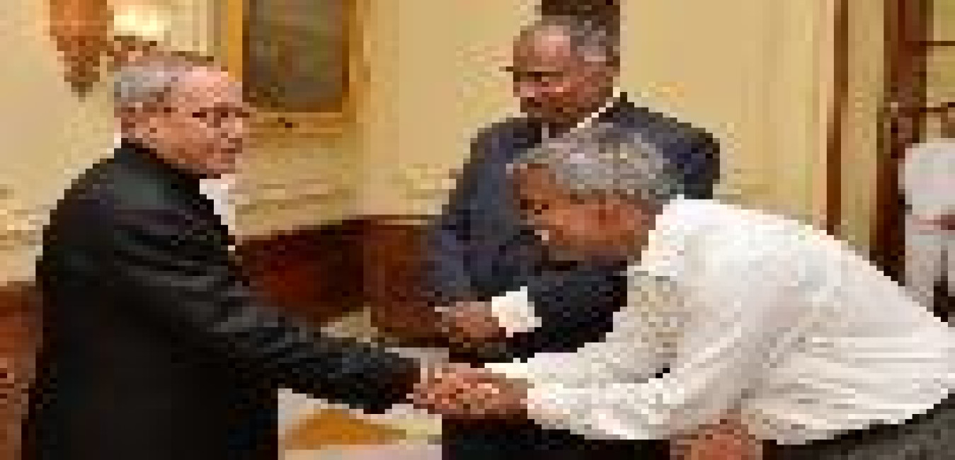 The President of India, Shri Pranab Mukherjee meeting with the Director, Indian Statistical Institute, Kolkata, Prof. Bimal K. Roy, at Rashtrapati Bhavan, in New Delhi on July 23, 2015.