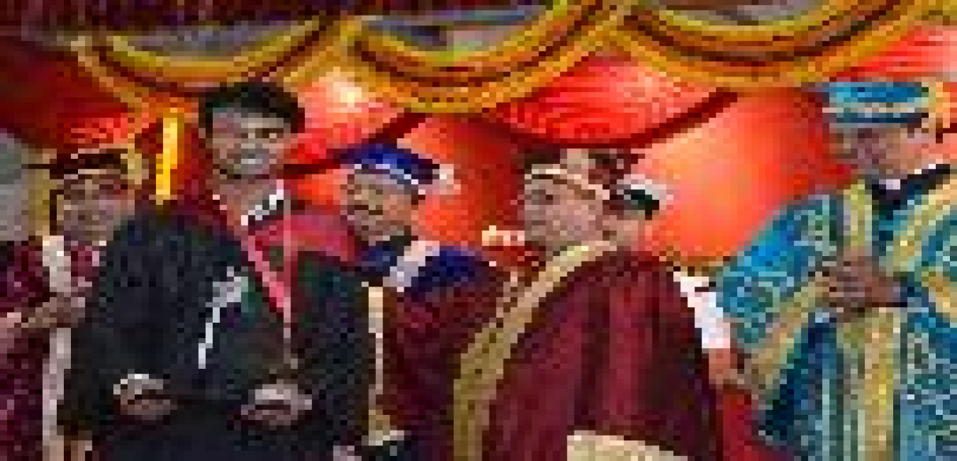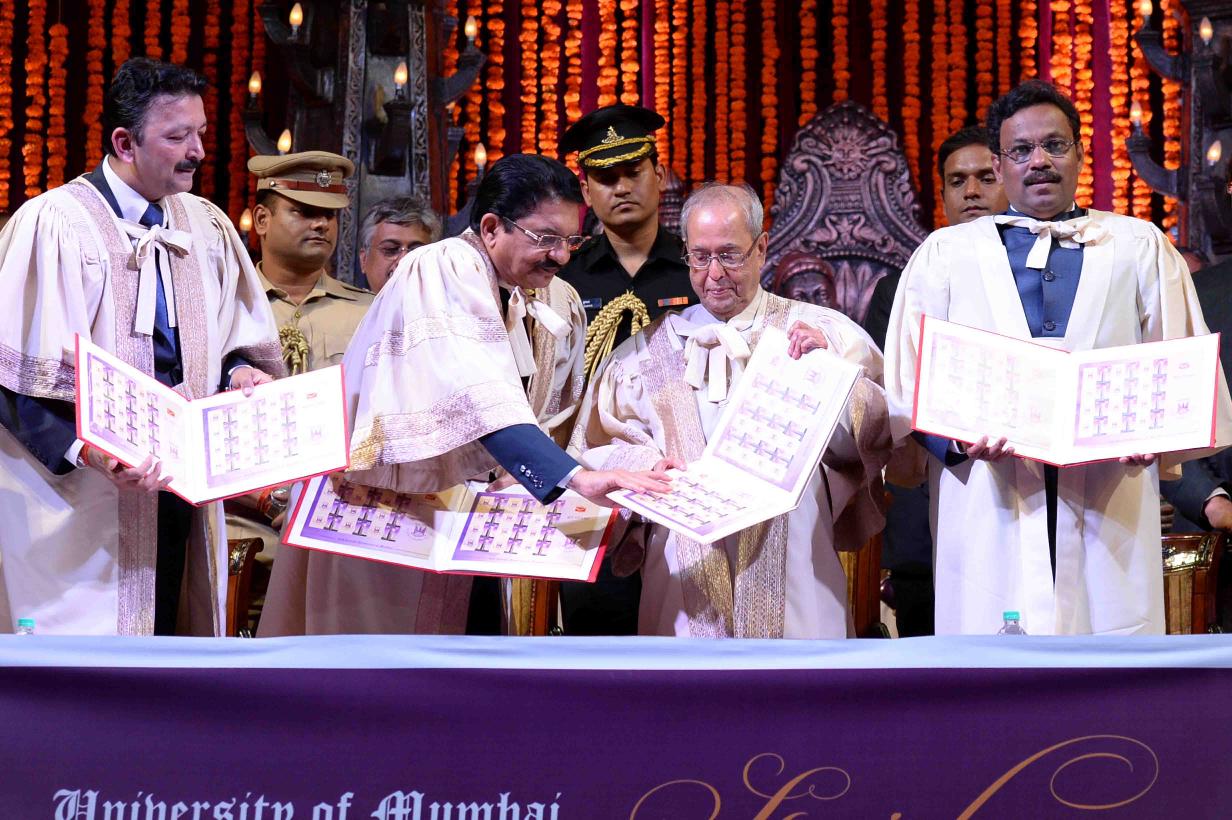 The President of India, Shri Pranab Mukherjee being felicitated by the Vice Chancellor, University of Mumbai, Dr. Sanjay Deshmukh, at the Special Convocation of University of Mumbai, at Mumbai, in Maharashtra on March 17, 2017.
