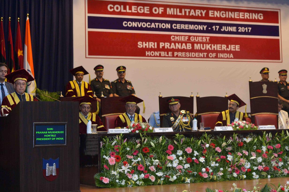 The President of India, Shri Pranab Mukherjee gracing the Convocation Ceremony of the passing out Engineering Graduate Courses of the College of Military Engineering, at Pune, in Maharashtra on June 17, 2017.
