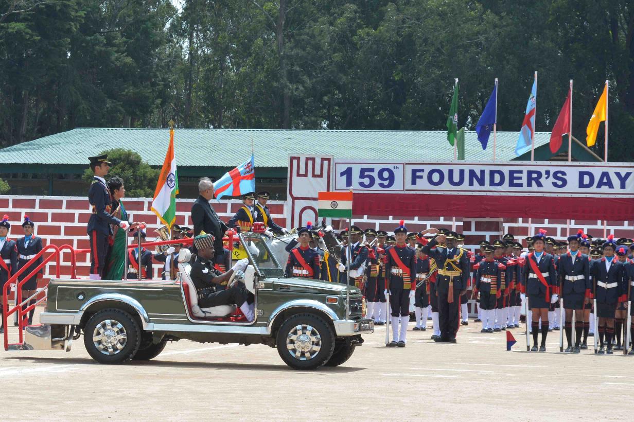 The President of India, Shri Pranab Mukherjee receiving National Salute and inspecting the parade at the 159th Founder s Day Celebrations of Lawrence School, at Ootacamund, The Nigiris, in Tamil Nadu on May 23, 2017.