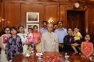 The President of India, Shri Pranab Mukherjee meeting with Shri Chanchal Chatterjee, Vice President, Birbhum Congress Committee alongwith his family members from Suri, Birbhum, at Rashtrapati Bhavan on March 29, 2016.