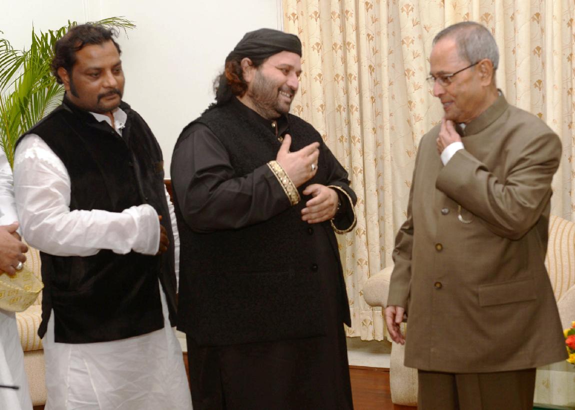 The President of India, Shri Pranab Mukherjee with Ustad Chand Afzal and Group for their Performance on Sufiana Qawali at Rashtrapati Bhavan in New Delhi on July 27, 2014