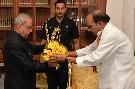 The President of India, Shri Pranab Mukherjee meeting with Shri D. Kalidas, Member, AICC, at Rashtrapati Bhavan, in New Delhi on October 05, 2015.