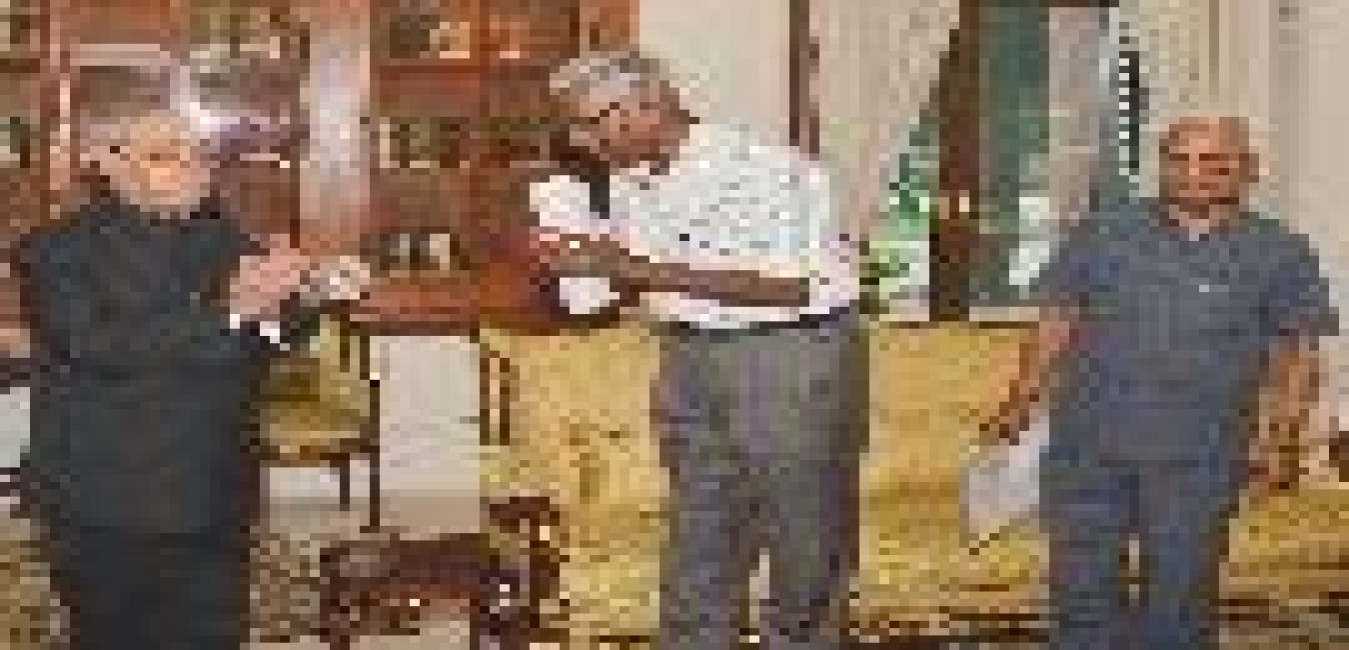 The President of India, Shri Pranab Mukherjee meeting with Shri D. Raja, MP (RS) alongwith Dr. Nara Singh, State Secretary, CPI, Manipur, at Rashtrapati Bhavan on May 30, 2016.