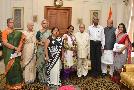 The President of India, Shri Pranab Mukherjee meeting with Shri D. Raja, MP (RS) alongwith tribal women from Manipur, at Rashtrapati Bhavan on November 22, 2016.