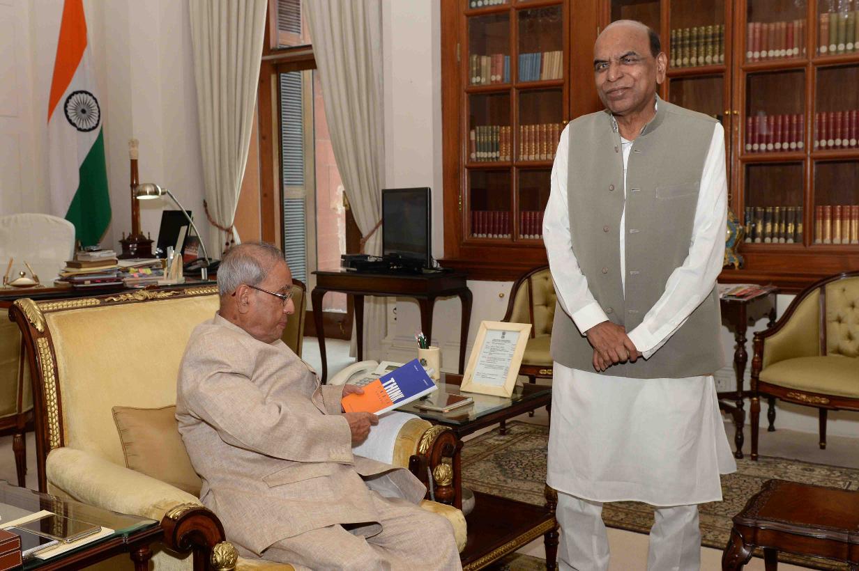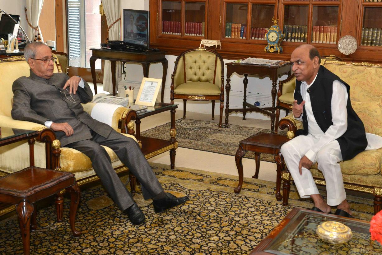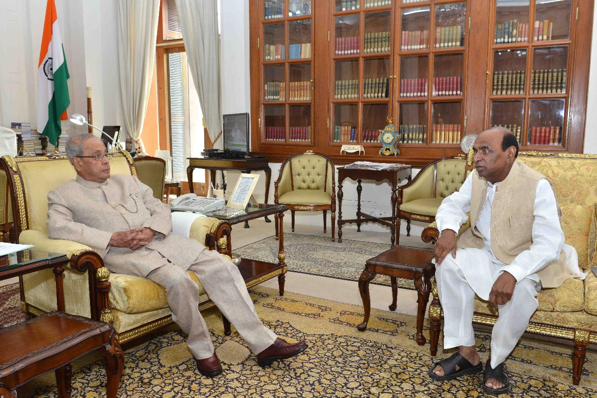 The President of India, Shri Pranab Mukherjee meeting with Shri D.P. Tripathi, MP (RS), at Rashtrapati Bhavan, in New Delhi on September 17, 2015.