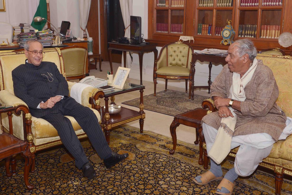 The President of India, Shri Pranab Mukherjee meeting with Shri Debi Ghoshal, Ex-MP (LS), at Rashtrapati Bhavan on January 20, 2016.