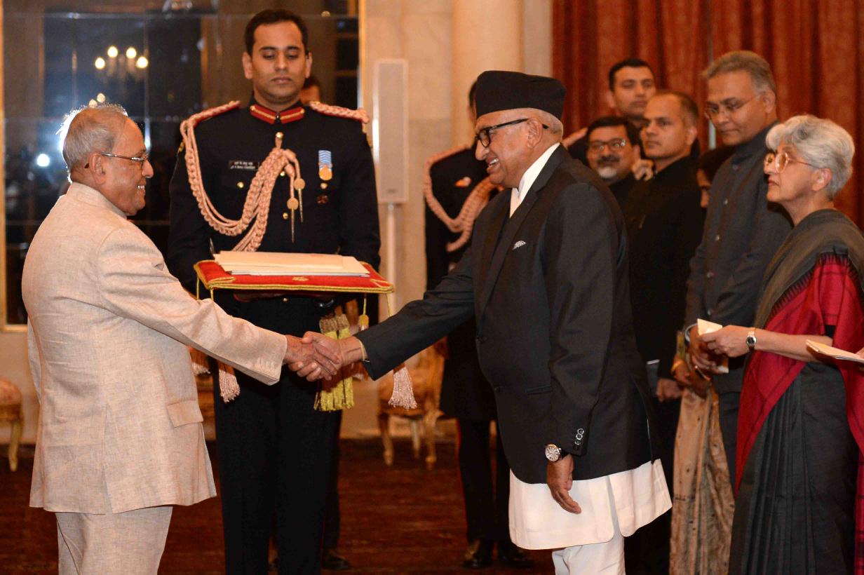 The Ambassador-designate of Nepal, H.E. Mr. Deep Kumar Upadhyay presenting his credentials to the President of India, Shri Pranab Mukherjee, at Rashtrapati Bhavan on November 30, 2016.