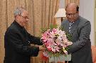 The President of India, Shri Pranab Mukherjee meeting with Shri Justice Dilip B. Bhosale, Acting Chief Justice, High Court of Judicature, at Rashtrapati Nilayam, Bolarum, in Secunderabad on December 19, 2015.