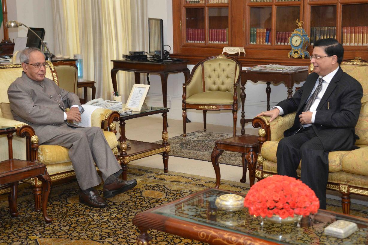 The President of India, Shri Pranab Mukherjee meeting with Shri Justice Dipak Misra, Judge, Supreme Court of India, at Rashtrapati Bhavan, in New Delhi on August 24, 2015.